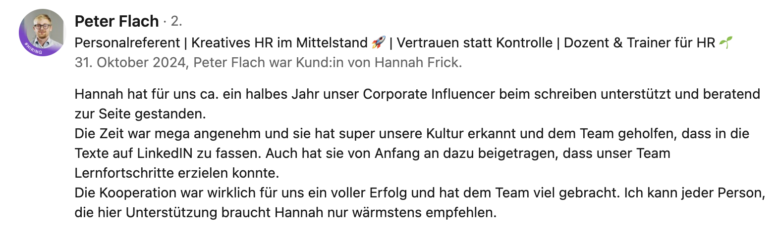 Als Thought Leader*in auf LinkedIn positionierst du dich klar als Expert*in, setzt relevante Impulse und stärkst gleichzeitig eure Employer Brand durch authentische Einblicke in Werte, Kultur und Führung.